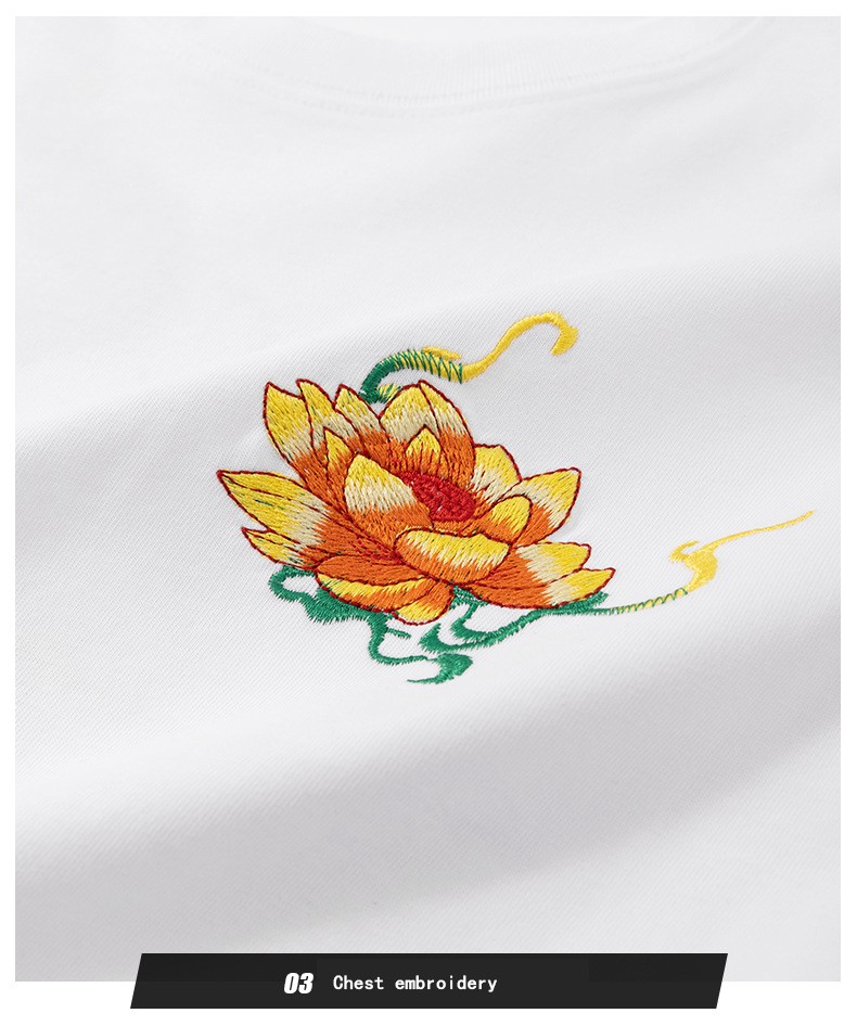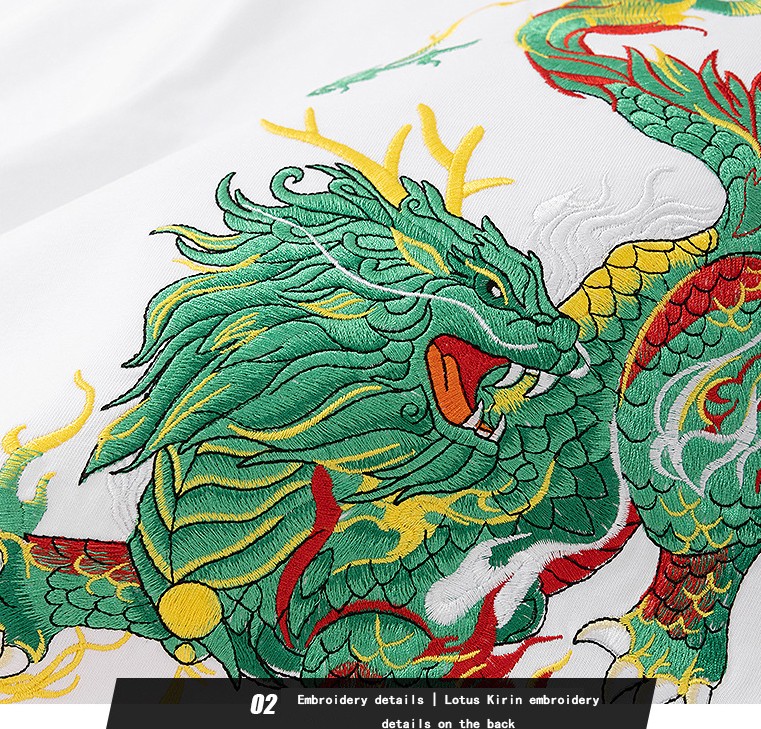 Kirin Bordado Manga Corta Camiseta Hombre Algodón Verano Suelta Media Manga Top ins Marca China Chic Hombres