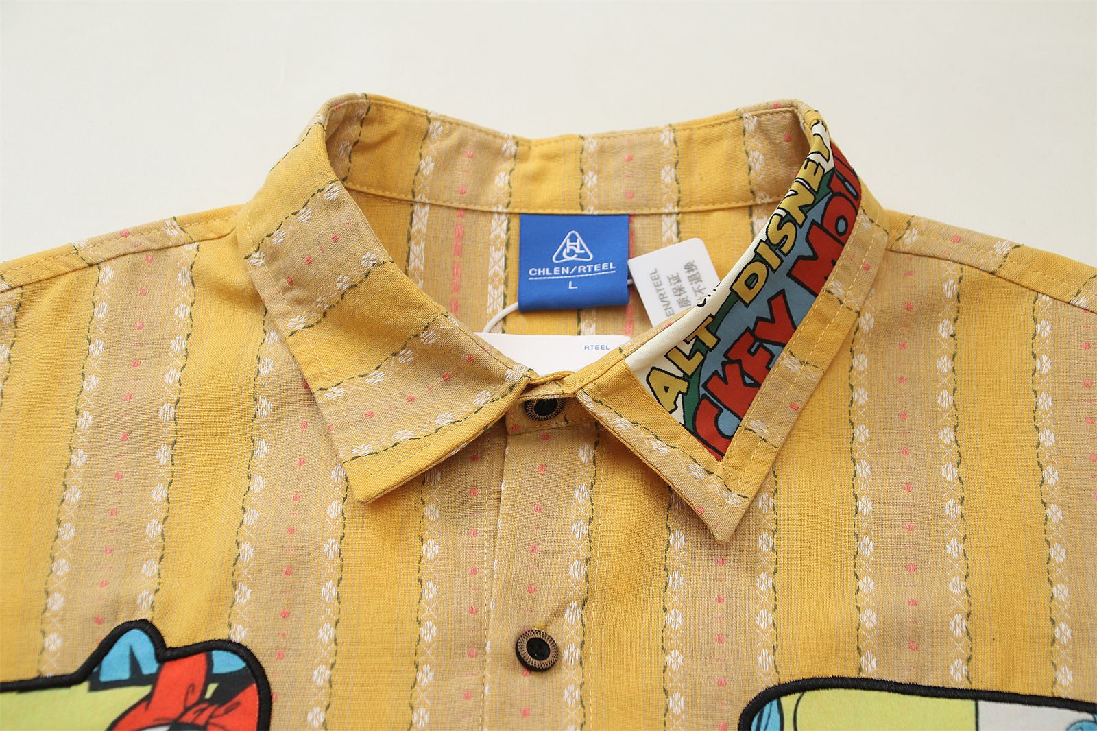 Camisa de manga corta a rayas con diseño de apliques de dibujos animados retro para hombres y mujeres