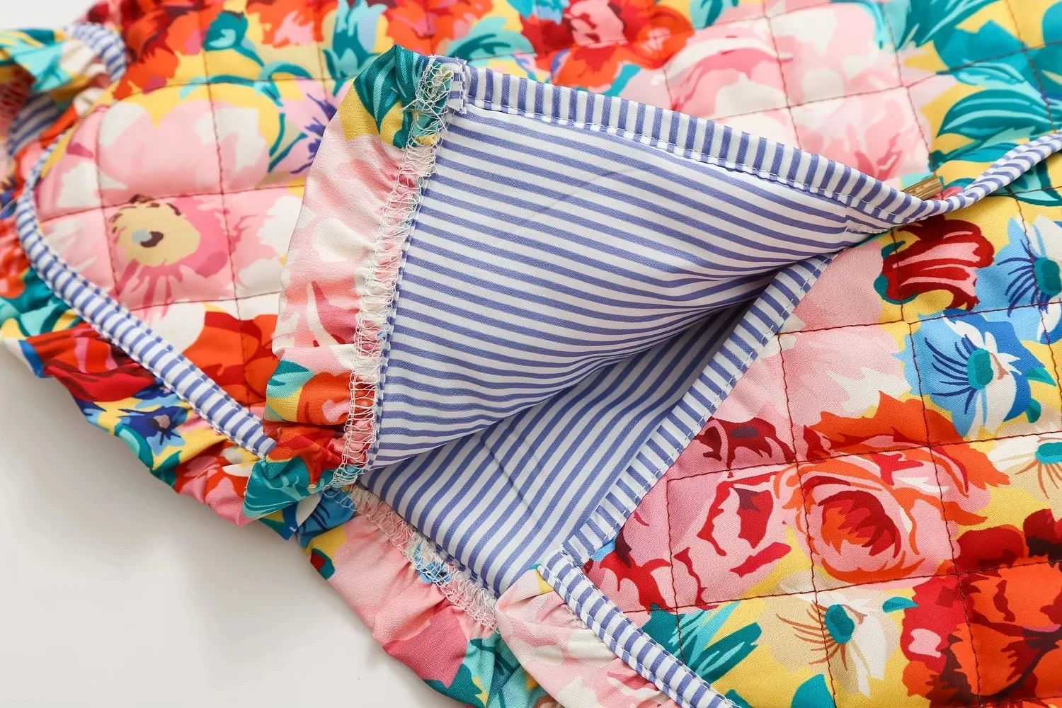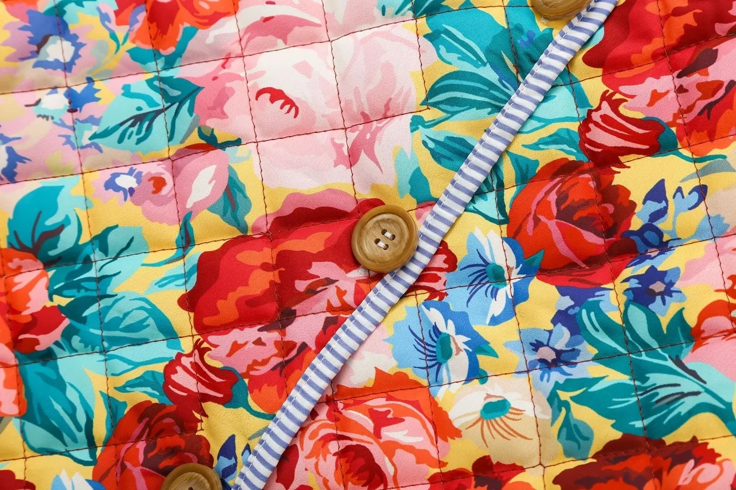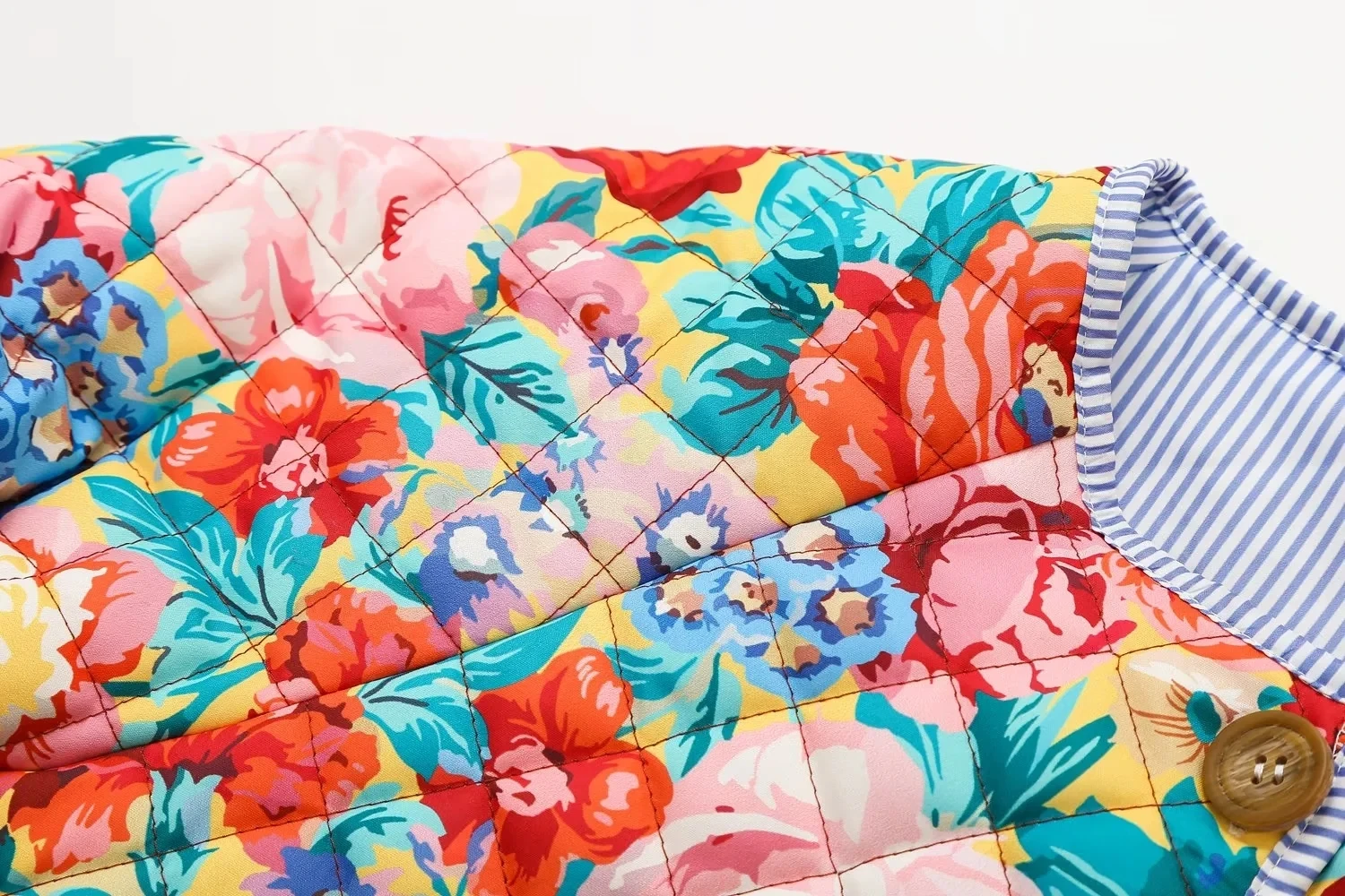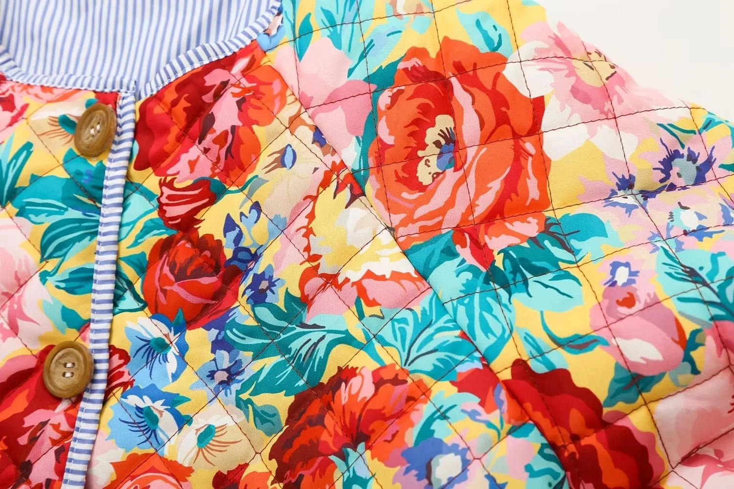 Moda Femenina Otoño/Invierno Chaqueta Acolchada con Rayas y Estampado de Retazos Cuello Redondo Manga Larga Abrigo Mujer Estilo Vintage