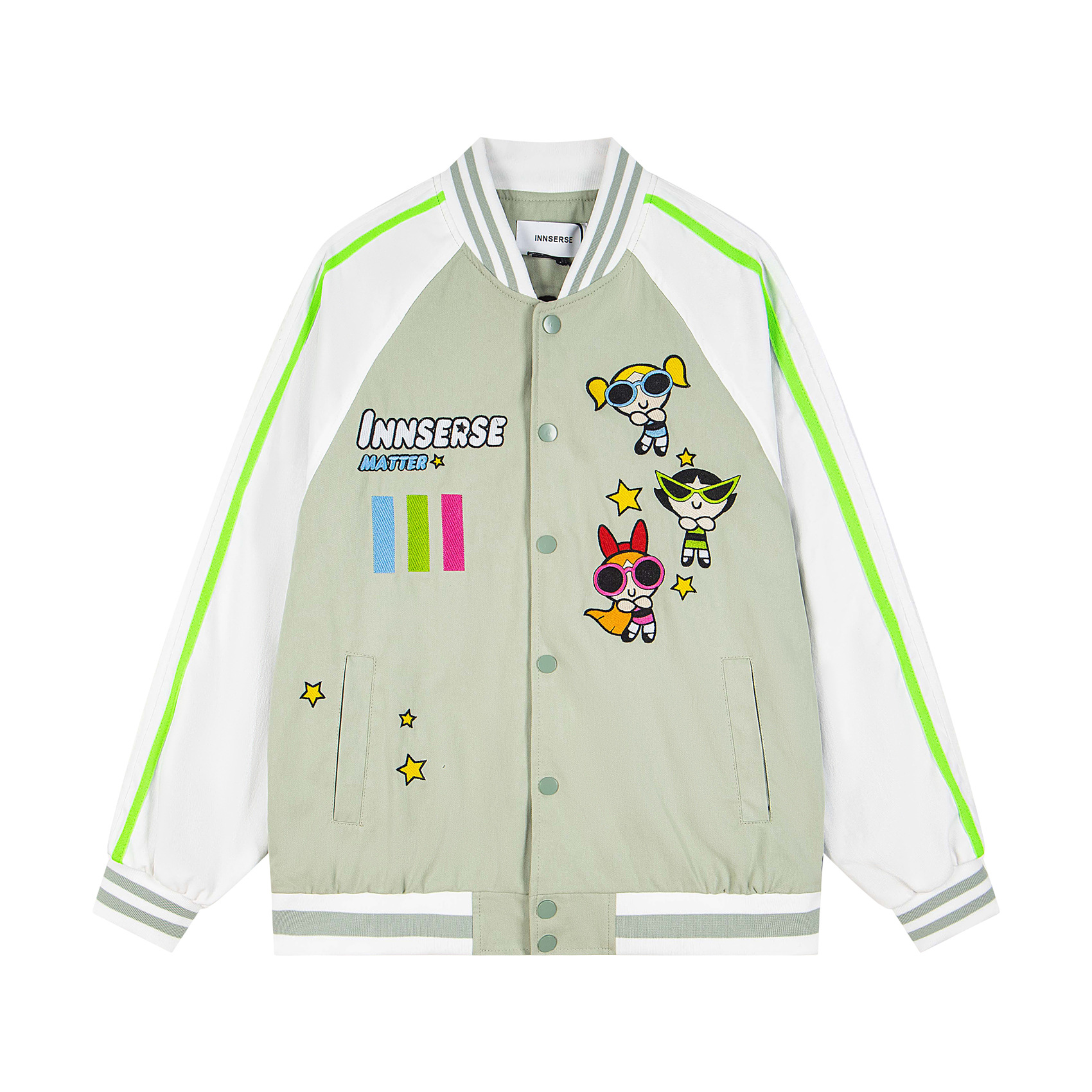 Color Block Fun Cartoon Embroidered Jacket Unisex Autumn Winter Loose Casual Trendy Couple Baseball Coat