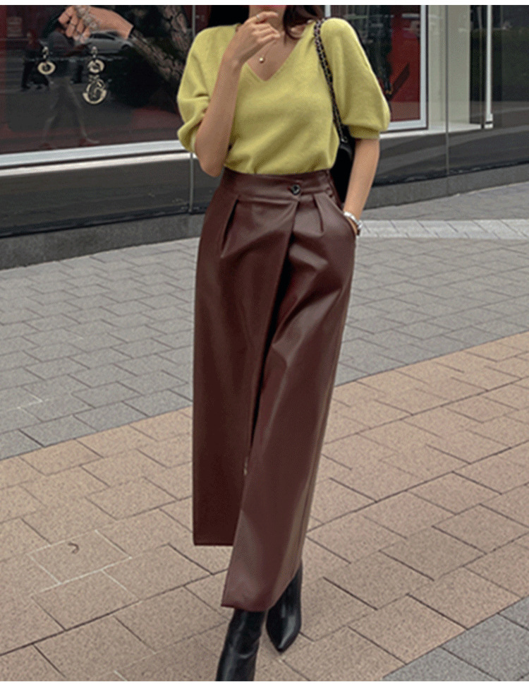 PU high waisted midi skirt women's split skirt