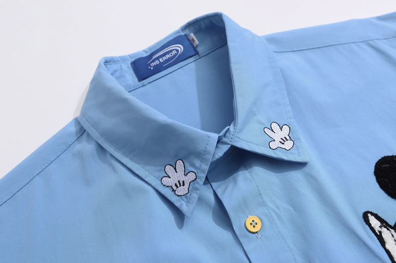 Vintage Cartoon Embroidered Plaid Shirt for Men, Retro Lazy Style Casual Versatile Couple Shirt